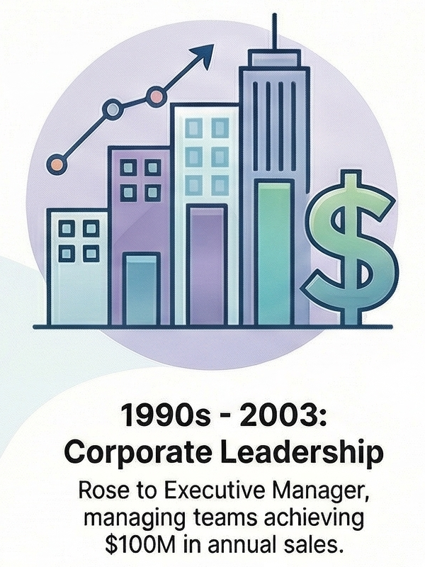 Shifting from pure technology to the commercial sector, Rick progressed rapidly through a series of sales and management roles at companies including Securacopy (part of Blue Star Print Group) and BJ Ball Papers (part of Carter Holt Harvey). His impact was significant, culminating in an executive role at BJ Ball Papers, where he was a member of the Company Leadership Team managing national sales of $100M/year and a local team generating $1M/month. Even then, he demonstrated his technological foresight by championing the improvement of internal business systems, advocating for tools like early paper-based CRM systems and newer digital tools like the Palm Pilot.