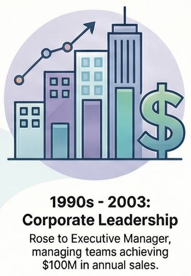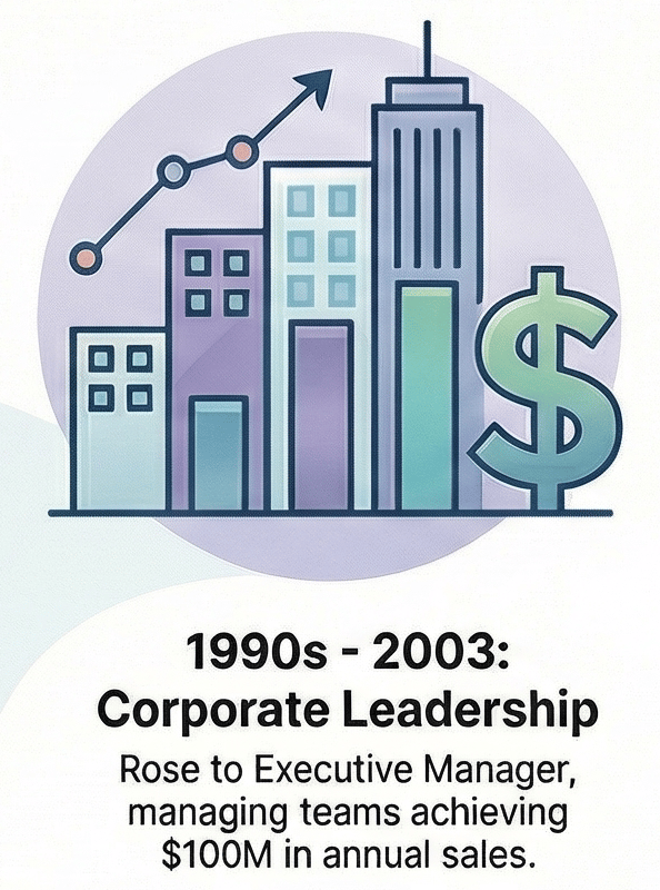 Shifting from pure technology to the commercial sector, Rick progressed rapidly through a series of sales and management roles at companies including Securacopy (part of Blue Star Print Group) and BJ Ball Papers (part of Carter Holt Harvey). His impact was significant, culminating in an executive role at BJ Ball Papers, where he was a member of the Company Leadership Team managing national sales of $100M/year and a local team generating $1M/month. Even then, he demonstrated his technological foresight by championing the improvement of internal business systems, advocating for tools like early paper-based CRM systems and newer digital tools like the Palm Pilot.